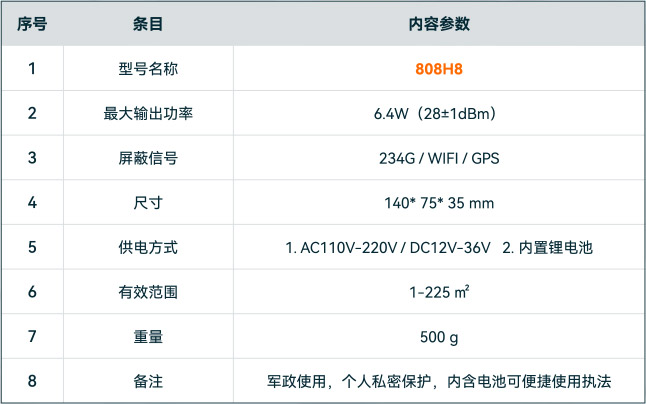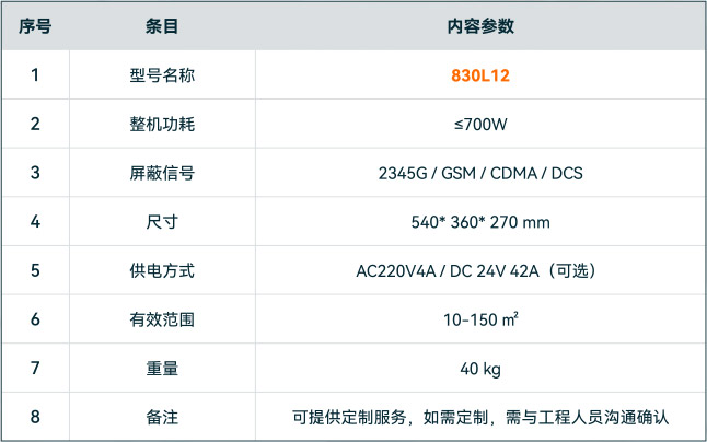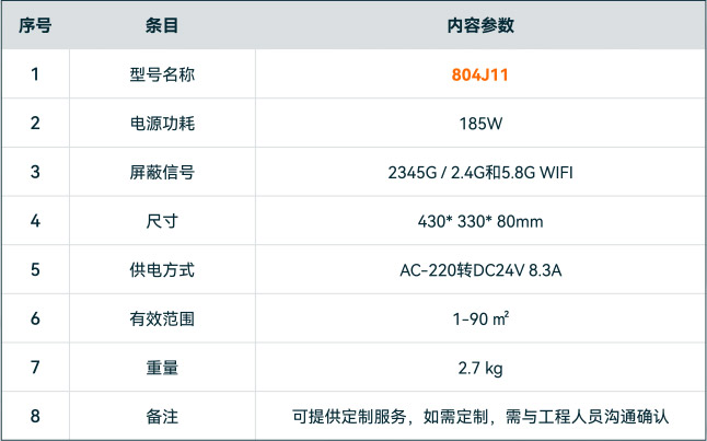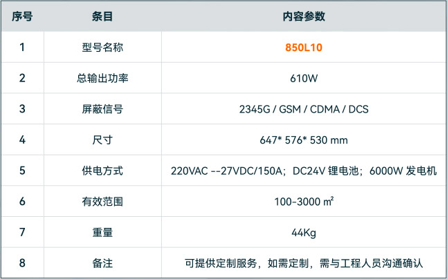 有效屏蔽各运营商,各制式的移动通讯信号及WIFl信号;